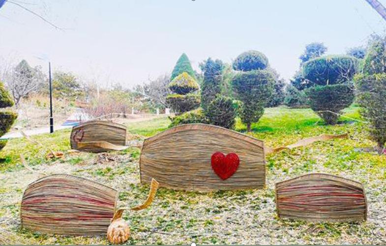 地景藝術以“生態環保、循環利用、變廢為寶”為理念,以園林廢棄物如柳樹枝、海棠枝、竹枝、桃枝等為主材料,通過設計師之手把這些變成了一個個栩栩如生的作品,為冬季景觀增色添彩。